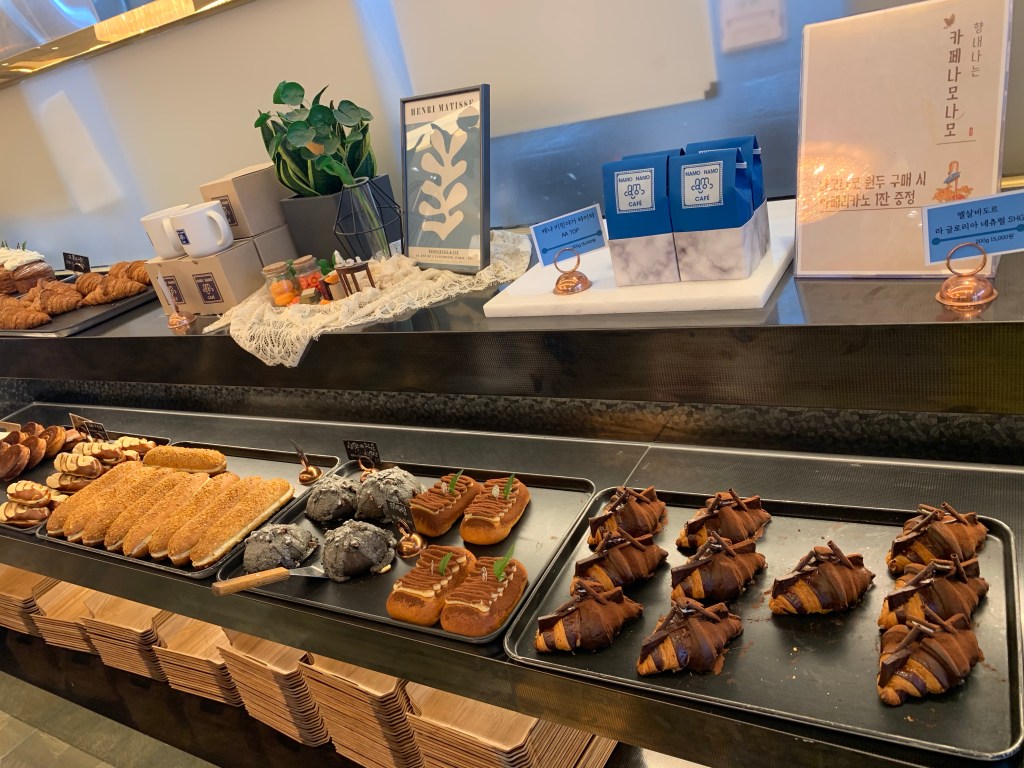 진열장 뒷편에서 직접 만들고 계시는 파티쉐 분들이 보였고 오후에 갔더니 인기 빵들은 많이 빠져있었다.