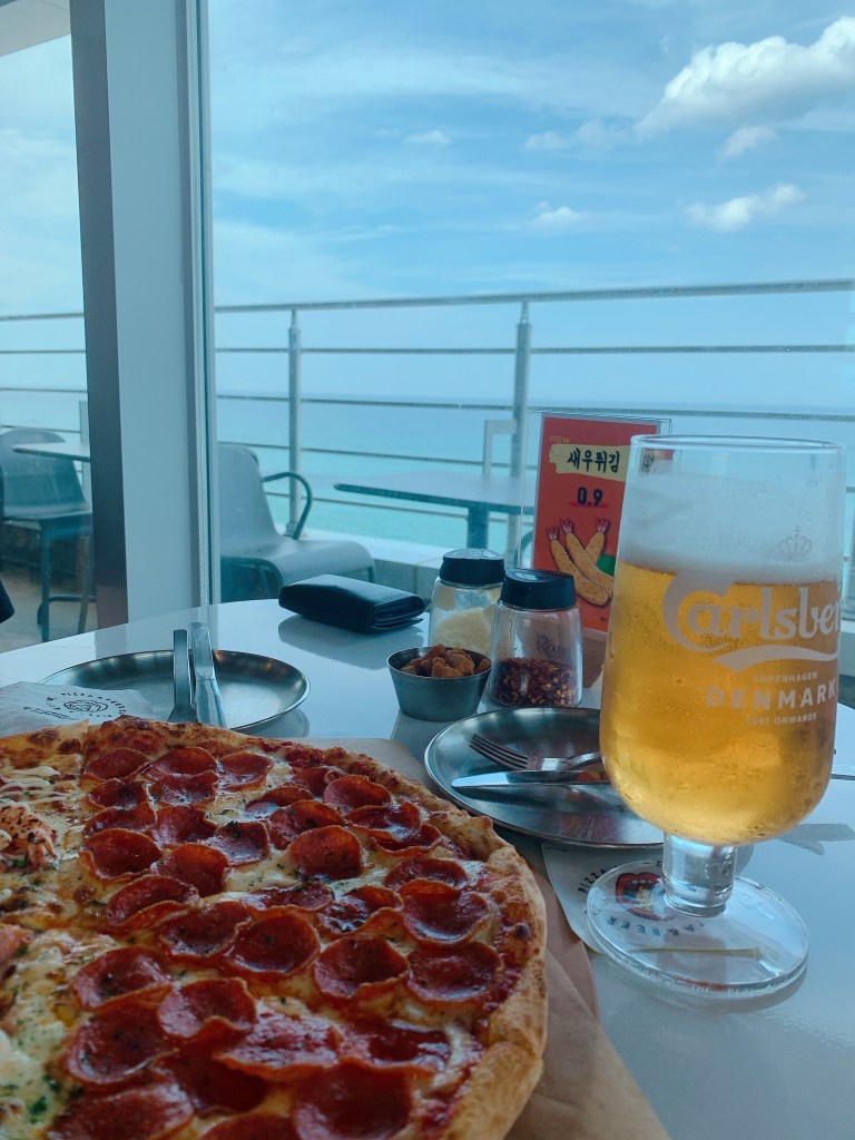 정말 바다뷰를 즐기며 피자와 맥주를 즐길 수 있게 되어 있다.