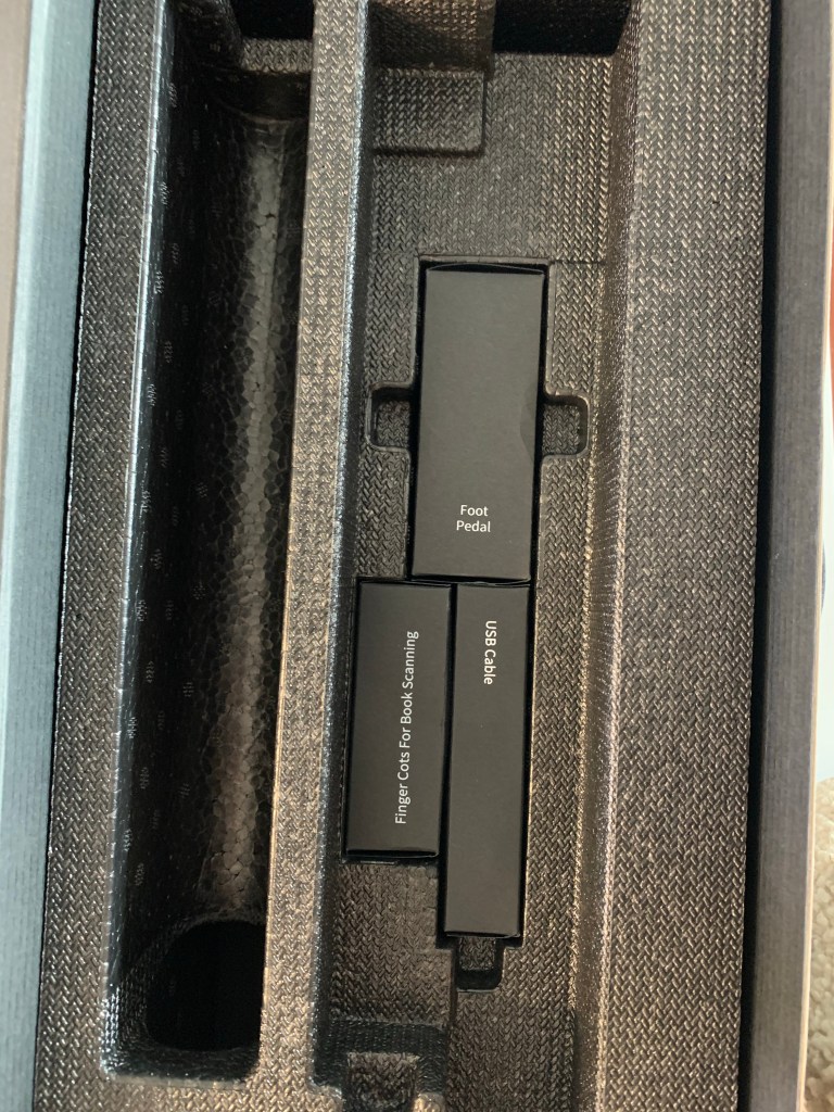 스캐너 본품을 꺼내면 요렇게 케이블, 풋페달, 핑거코트가 들어있다.