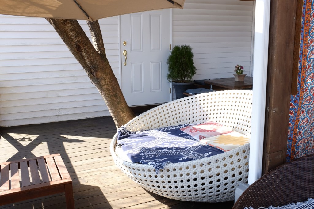 나무를 자르지 않고 나무를 포함해서 자연스럽게 데크를 깔고 2층 공간을 만들기도 했다.
