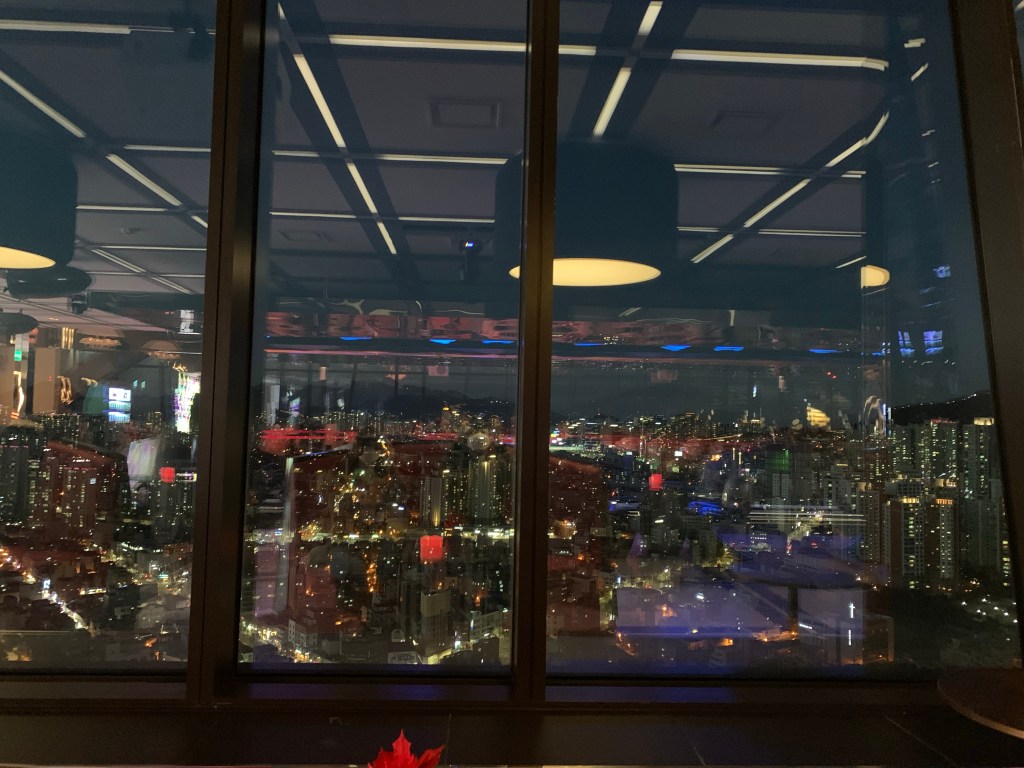 창가자리에 앉아서 야경을 즐기며 행복한 시간을 보냈다.