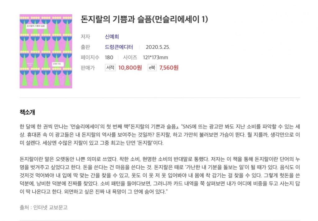 그리고 ‘가난한 내 기분을 돌보’기 위해서 시간을, 공간을, 분위기를 돈으로 사고 누리면서 얻는 기쁨들을 생각하게 했다.