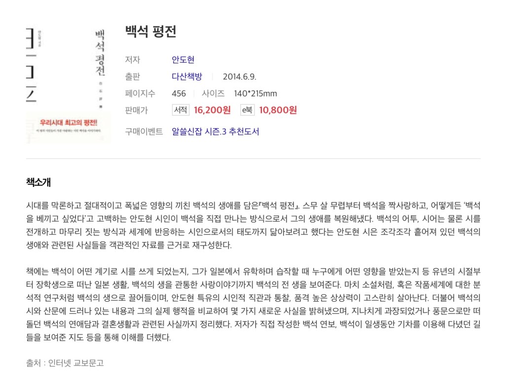 그때 소개된 안도현 시인이 쓴 백석 평전을 읽으면서