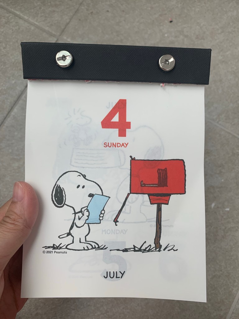먼저 공짜로 받아서 조금 ‘덜’ 소중한 알라딘 피너츠 일력부터 해체했다.