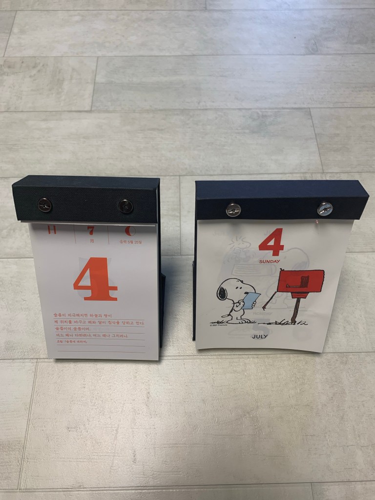 하나는 굿즈의 노예로서… 알라딘에서 책을 사고 받은 알라딘 피너츠 일력이고.