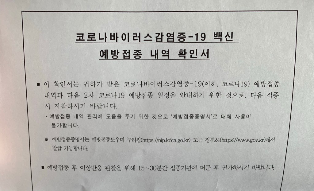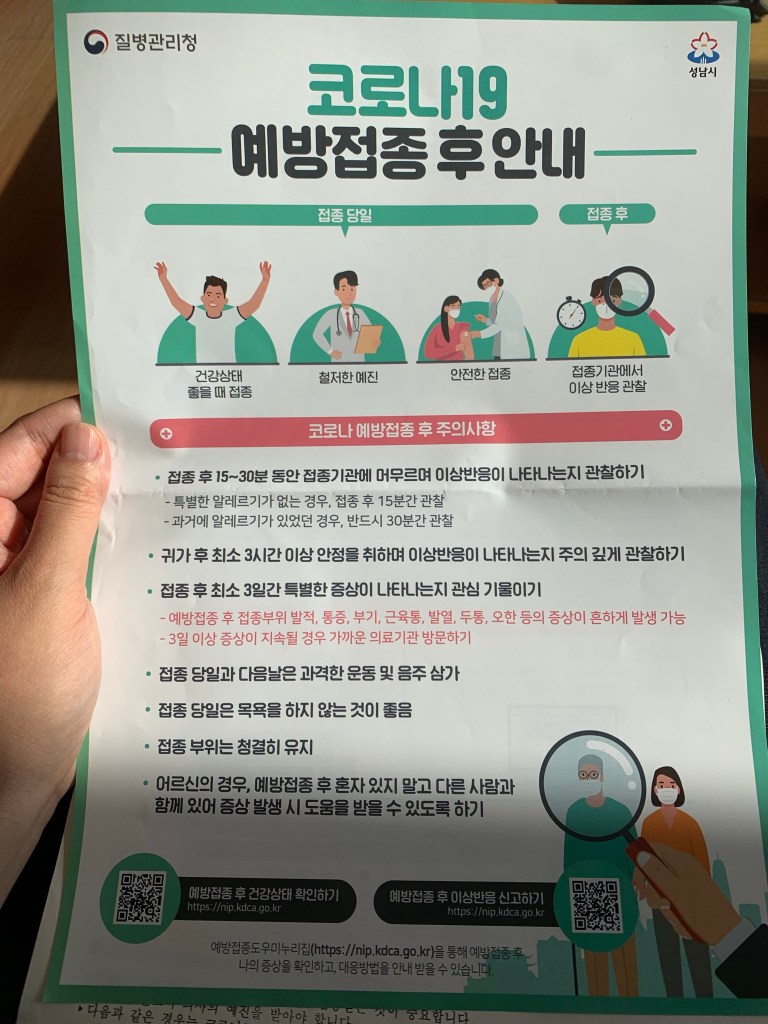 그래도 어찌어찌 무사히 접종을 하고 와서, 하루가 지난 지금은 그저 안도하며 글을 쓰고 있다.