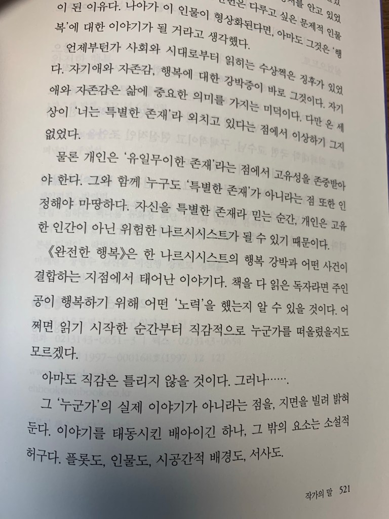 “나는 특별한 사람이니까 완전하게 행복해져야겠다. ”