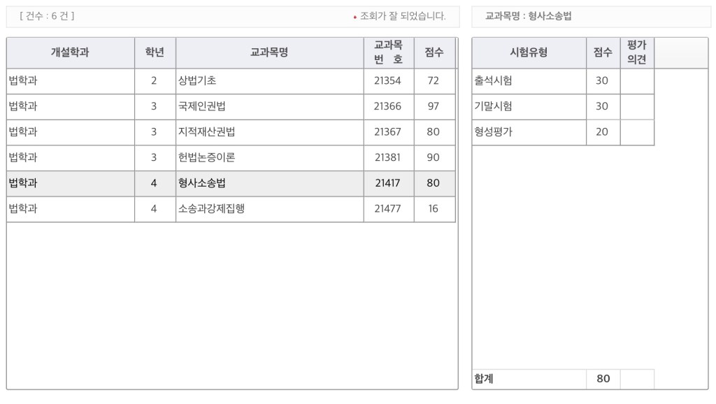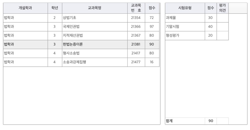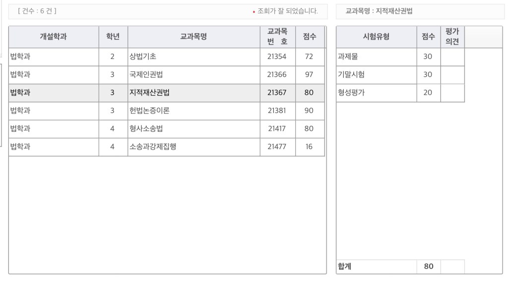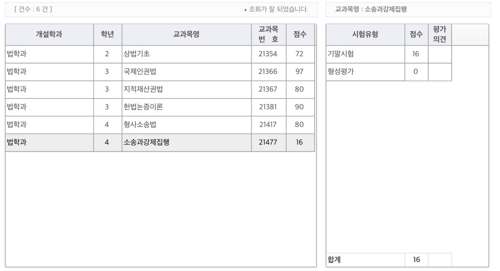 지적재산권법이랑 형사소송법이 성적이 같다니.
