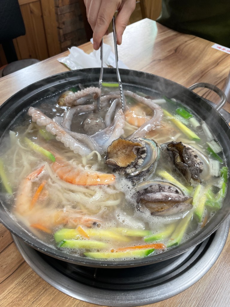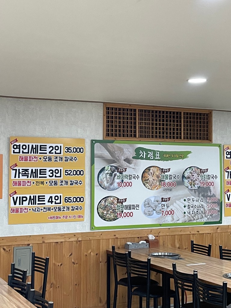 해물 잔뜩 든 칼숙수와 파전, 실컷 마시는 동동주, 그리고 맛있는 김치를 곁들일 수 있는 음식점이었다.