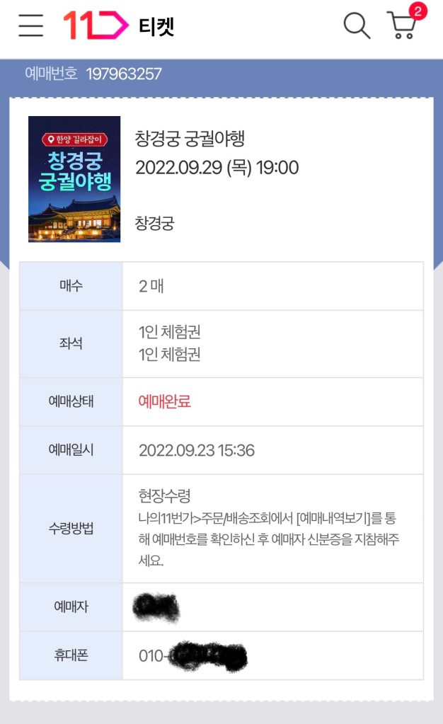 운좋게 창경궁궁궐야행 티켓을 사게 됐다.