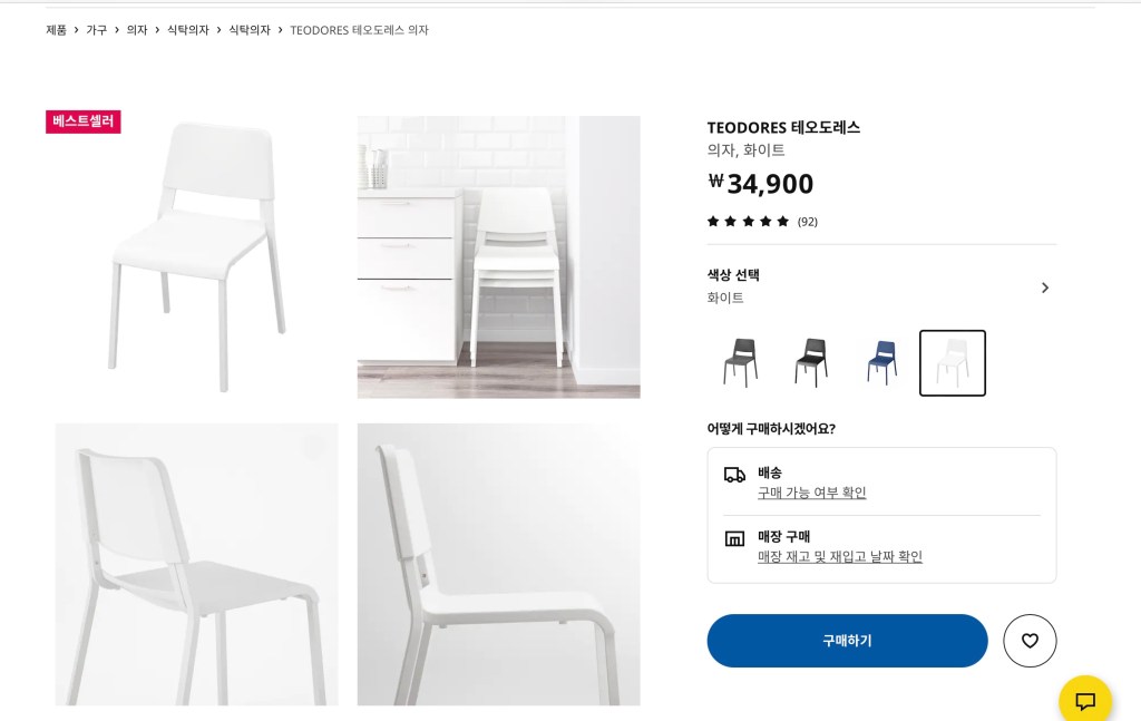 또 이렇게 오픈된 형식의 다른 의자는 등 부분을 눌르는 느낌이 있어서 테오도레스로 골랐다.