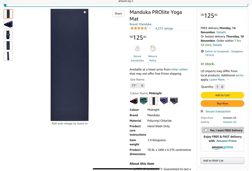 내가 선택한 요가매트 모델은 만두카프로라이트 (Manduka PROlite).