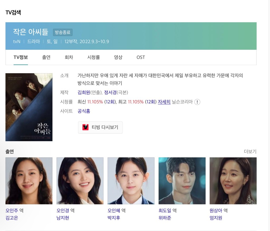 오혜석 캐릭터가 있었기에 ‘작은아씨들’ 소설 원작에서처럼 이 자매들에게도 그래도 비빌 곳이 있구나 하는 원작과의 연결성을 잊지 않게 해준 것 같다.