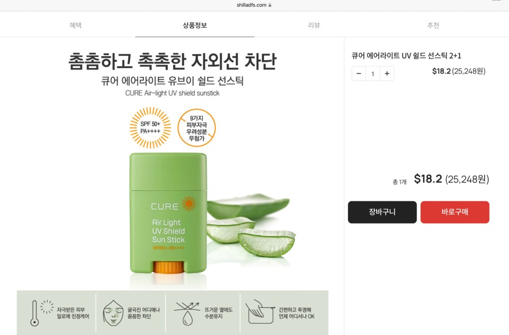 정식 명칭은 큐어 에어라이트 UV 쉴드 선스틱 이었다.