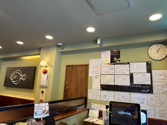 성인 4인이 방문해서, 미역국을 1인 1그릇씩 고르고 활전복 회무침도 하나 시켰다.