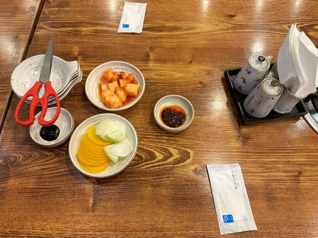 덜어먹기 좋게 미리미리 작은 접시들과 가위를 준비해줘서 좋았다.