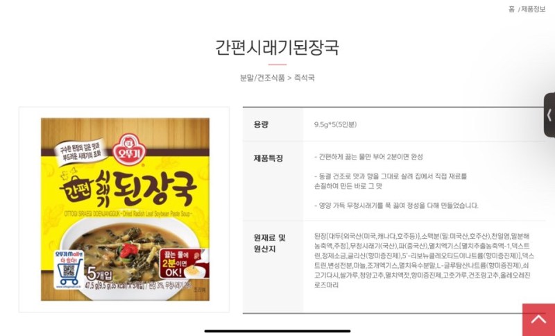 오뚜기 간편 국은 시래기 된장국 이외에도,