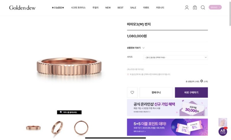그런데 골든듀에 할인 행사 페이지에서 이 반지를 보고
