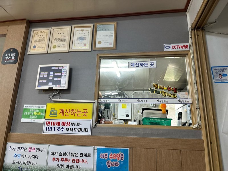 실제로 내가 막국수를 기다리는 동안 남자 직원이 유리컵을 방바닥에 떨어뜨려서 깼고 정신이 없었다.