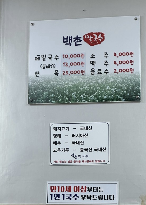 원주-강릉-고성 여행 중 유명한 맛집이라는 ‘백촌 막국수’에 가봤다.