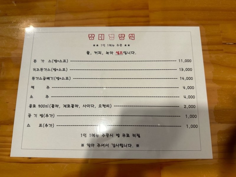 두명이서 방문했고, 돈가스 1, 치즈돈가스1을 주문했고 제로콜라도 주문했다.