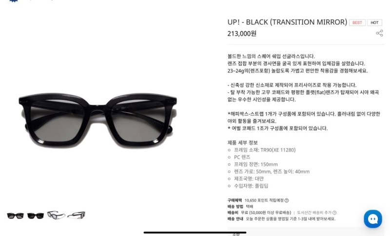 가볍고 편안한 선글라스로 추천한다고 해서 구매하게 됐다.