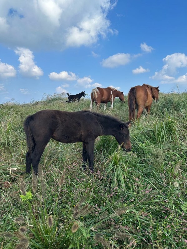 흔들리는 억새들, 파란 하늘, 자유롭고 행복해보이는 말들을 보면서
