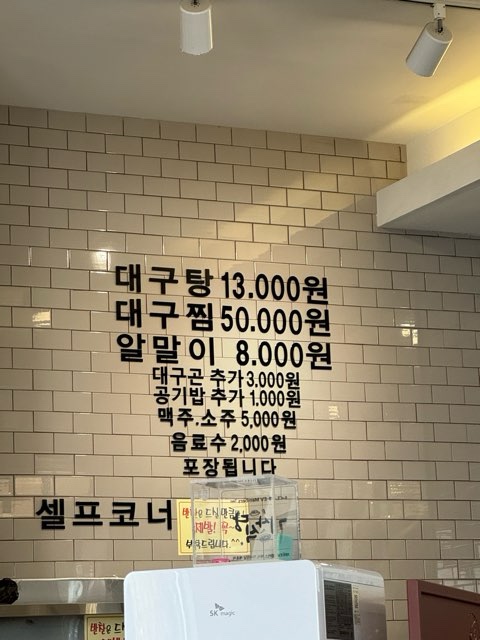 둘이 방문해서 대구탕2, 알말이1 주문하면 딱 배부르고 든든한 식사를 할 수 있을 것 같다.