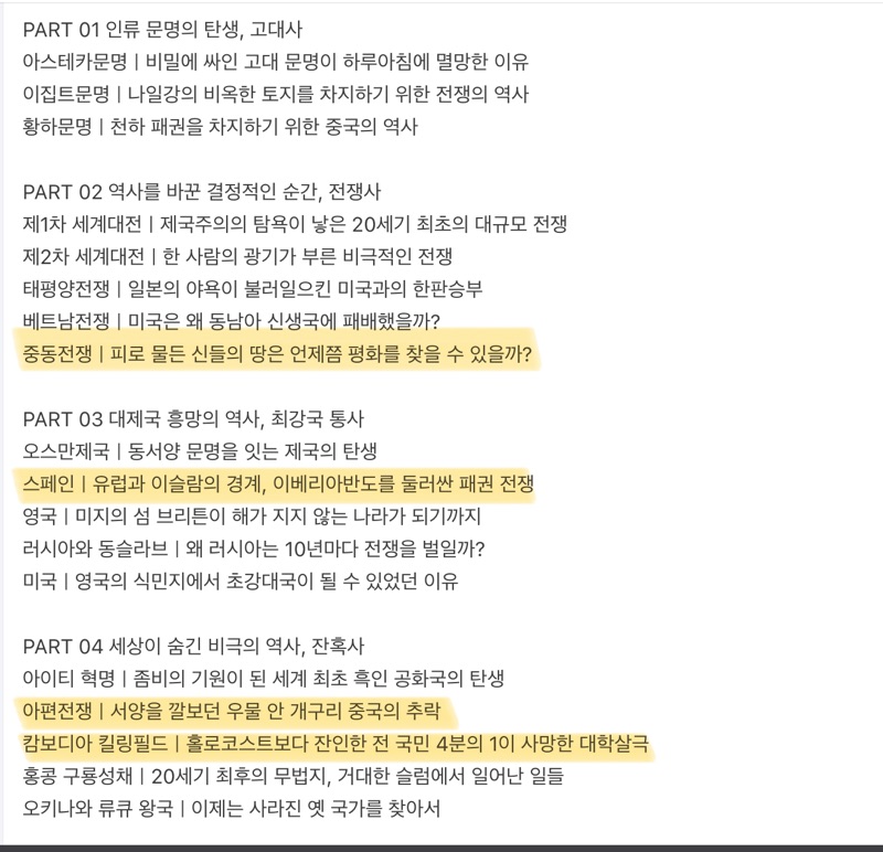 목차에서 하이라이트 표시한 부분이 가장 흥미진진했다.