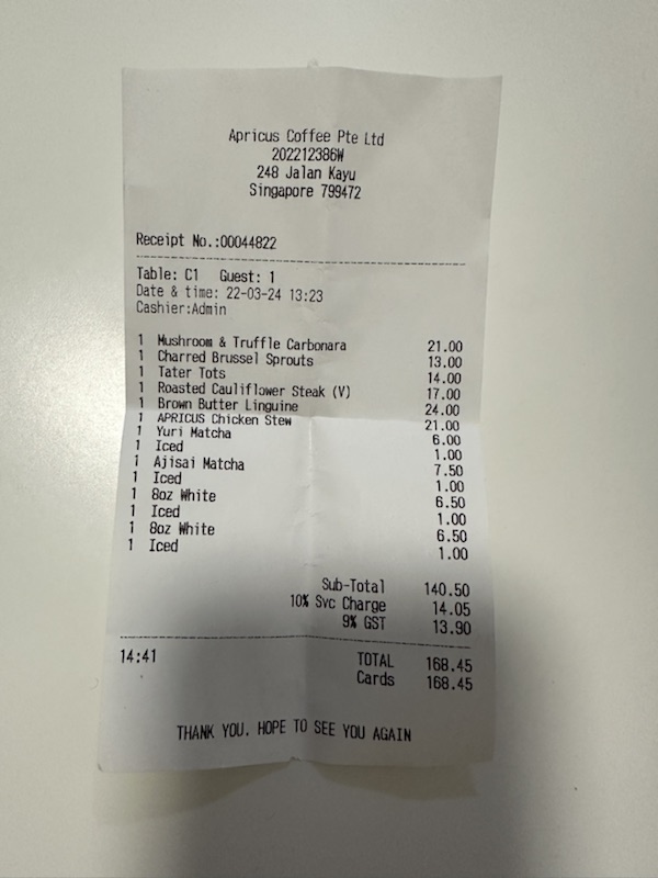 싱가포르의 물가를 생각하면 막 엄청난 가격은 아니었고,