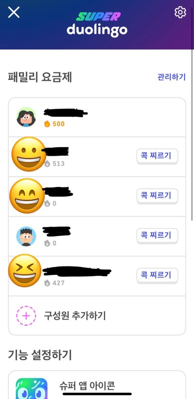 친구나 가족을 추가해서 함께 사용할 수 있고