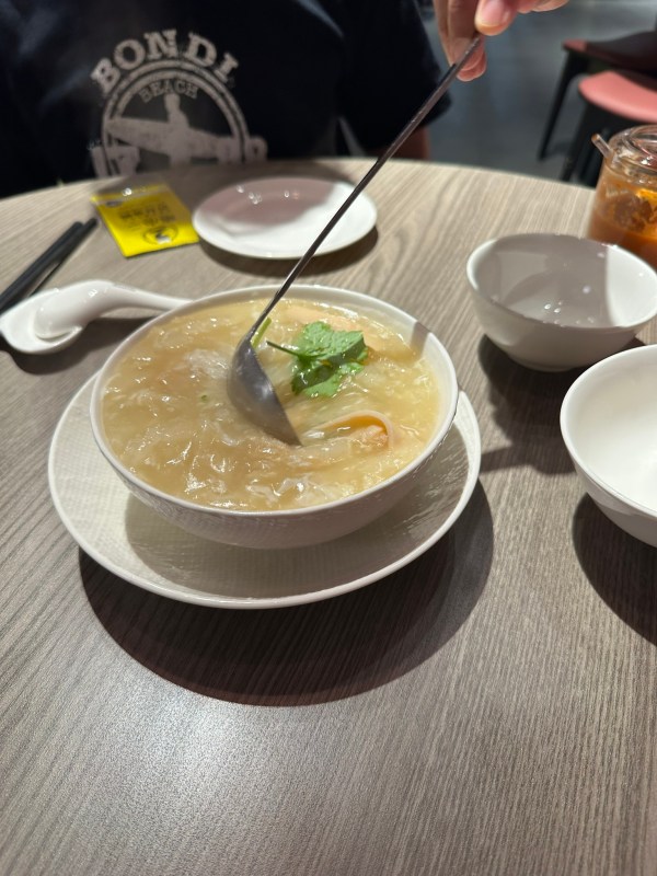 수프는 아주 뜨겁지는 않았고 적당했다.