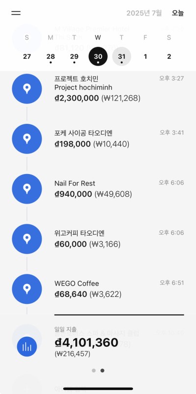 자기 전에 한번씩, 오늘 하루 이렇게 돈쓰고 돌아다녔구나를 쭉 볼 수 있다.