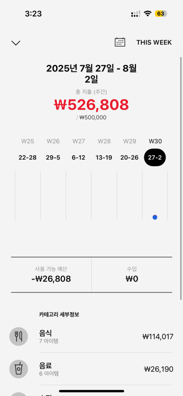 이런 식으로 일 지출을 모아서 볼 수 있기 때문에