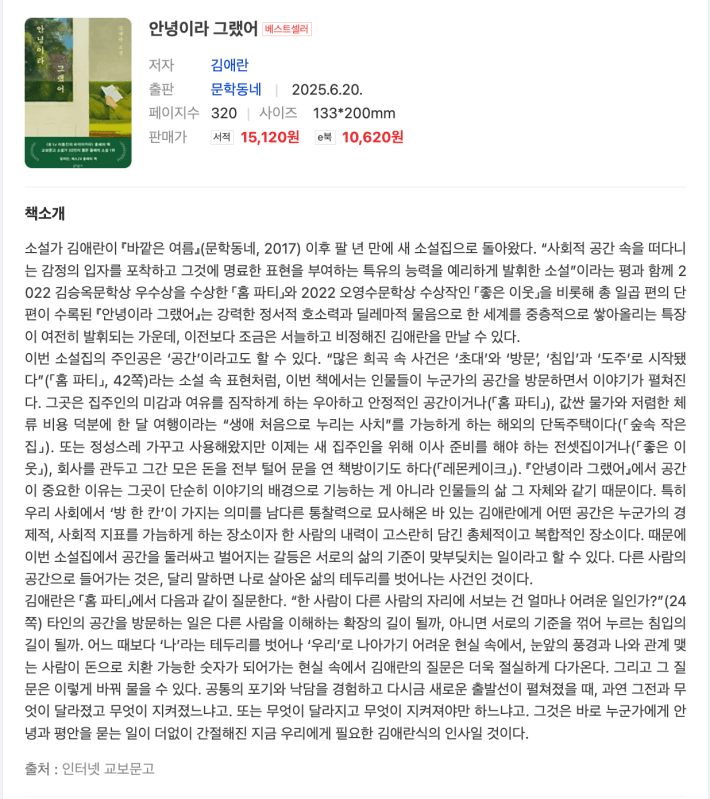김애란 작가의 소설집 ‘안녕이라 그랬어’를 읽었다.