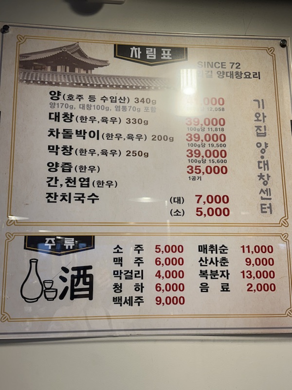 기와집양대창은 동생이 먼저 방문해봤는데 만족스러웠다고 해서 가족들과 함께 갔다.코베아랑 커피두가 있어서 몇번 갔던 건물이었다. 주차장은 꽤 넓고 발렛파킹을 해준다.대신 발렛파킹비를 내야 하니까 현금이 있는게 좋고 이체해도 되긴 하다. 가게는 꽤 넓지만 그래도 단체라면 예약을 하고 가는 것이 좋다.우리 일행은 총 7명이고 휴일 저녁에 예약도 없이 갔는데,운좋게 창가 쪽에 두 테이블이 비어 있어서 잘 앉았다. 서빙해주시고… Continue reading 기와집양대창에서 식사를 했다.