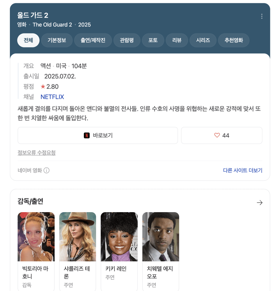 넷플릭스 영화 ‘올드가드2’를 봤다.