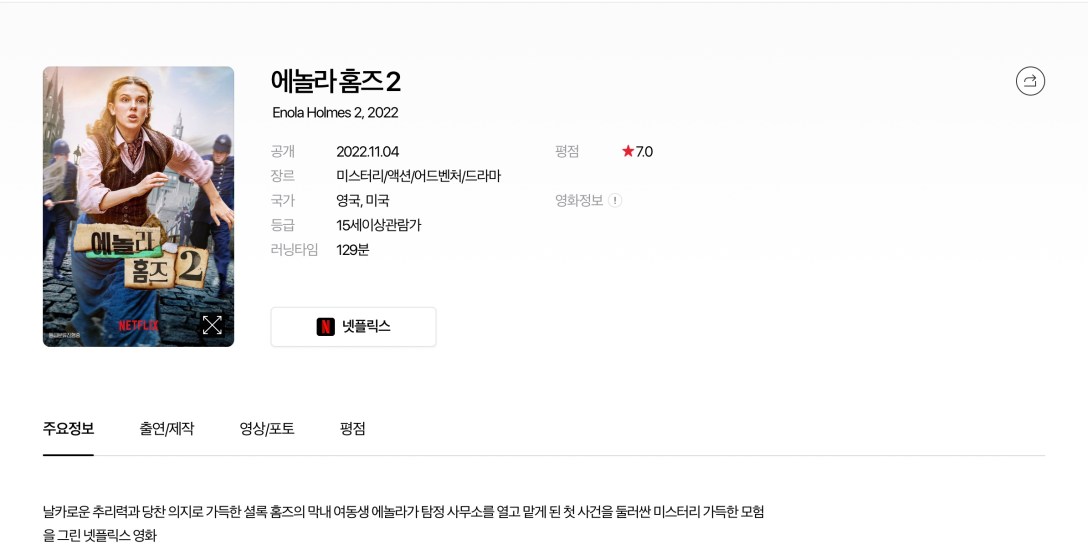 영화 ‘에놀라 홈즈2’를 봤다.