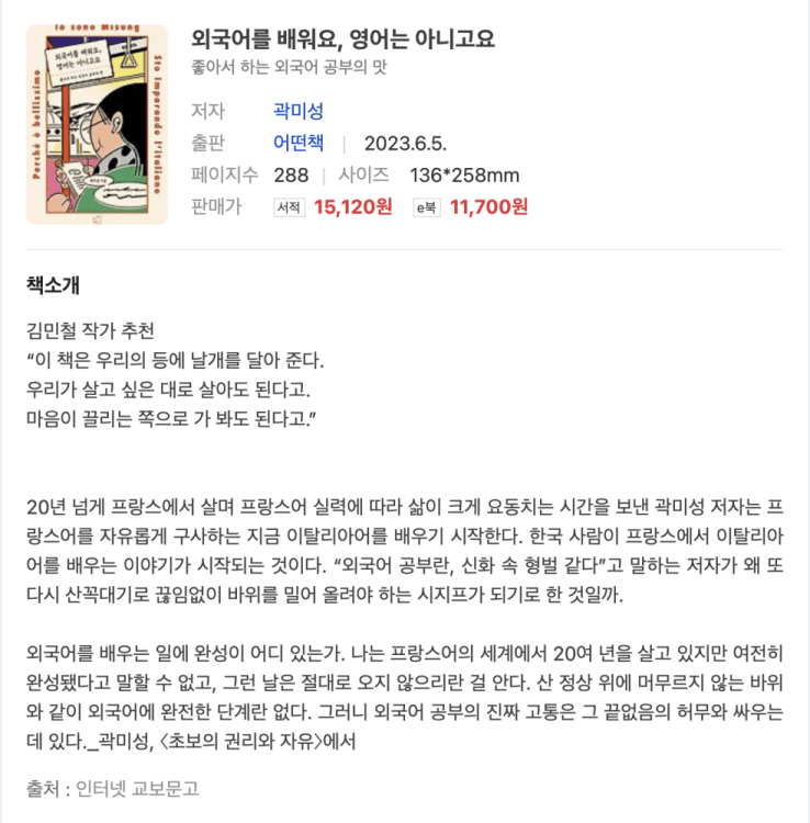 ‘외국어를 배워요, 영어는 아니고요’를 읽었다.