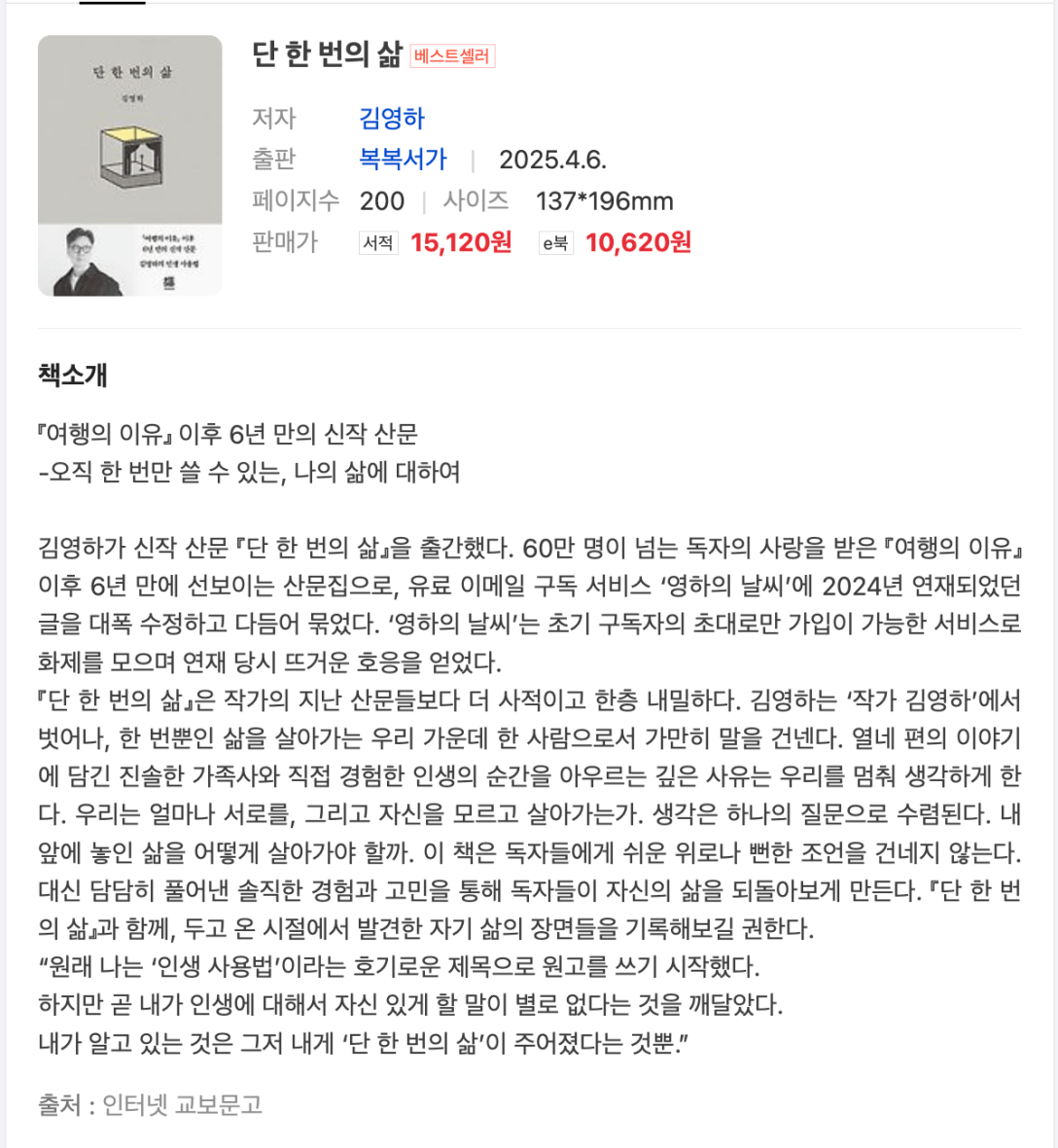 ‘단 한번의 삶’을 읽었다.