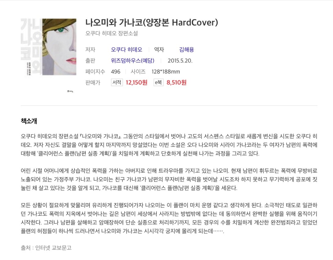 ‘나오미와 가나코’를 읽었다.